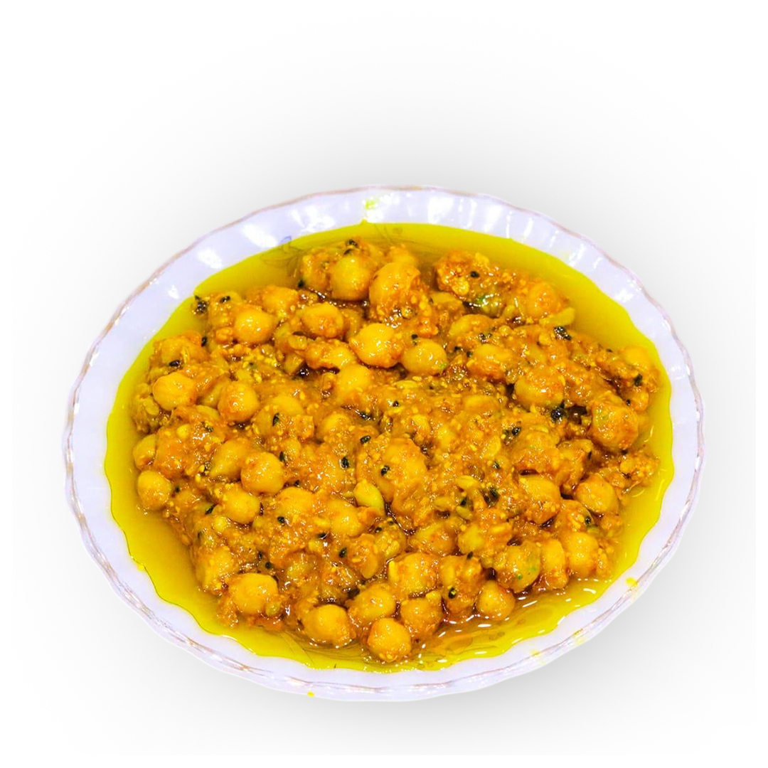 Enjoy the unique taste of Chana Achar, a traditional pickle crafted with premium-quality chickpeas, blended with a special mix of spices, and preserved in pure oil for an authentic and bold flavor. This spicy and tangy achar pairs perfectly with roti, parathas, daal, and rice, adding a delicious kick to your meals. Packed with protein and essential nutrients, Chana Achar is not just a flavorful condiment but also a nutritious addition to your diet. Savor the homemade taste in every bite!